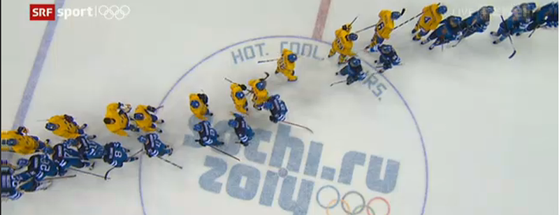 Nachdem Finnland die wichtigste russische Medaillienhoffung vereitelt hatte, war die Freude beim "kleinen Nachbarn" der Schweden natürlich gross. Auch für die Schweden war dies wichtig, da ein Spiel gegen die Gastgebernation natürlich deutlich schwieriger gewesen wäre. Durch das Ausscheiden des russischen Eishockeyteams ist das Interesse des Gastgeberlandes offensichtlich gefallen, da die Ränge fast leer sind - nicht würdig eines olympischen Halbfinales!