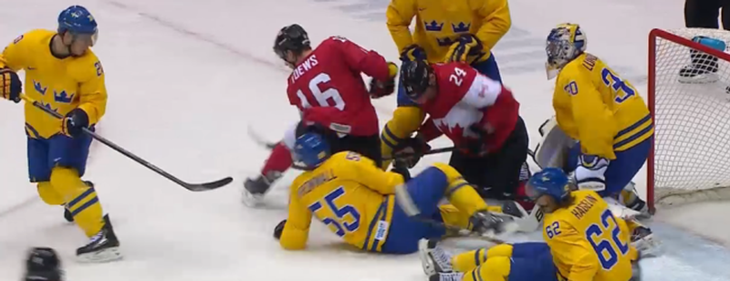 Das Powerplay zu Beginn des zweiten brachte keine nennenswerte Chancen und anschliessend das wohl schlechteste Drittel der Tre Kronors im gesamten Turnierverlauf. Defensiv spielen die Schweden einfach "schlafwandlerisch" - Großchancen der Kanadier im Halbminutentakt. Allein dem "King" Hendrik Lundqvist ist es zu verdanken, das die Schweden diese Drittel mit nur 1:0 verlieren. Und diese Tor ist aus der Offensive heraus entstanden - Scheibenverlust in der Vorwärtsbewegungen - Sid the Kid im Breakaway und dieser bisher noch eher "unauffällige" Superstar verwandelt mit etwas Glück einem sogenannten "Backhand - Deke". 2:0 am Ende des zweiten Drittel - da sind die Tre Kronors echt noch gut bedient.
