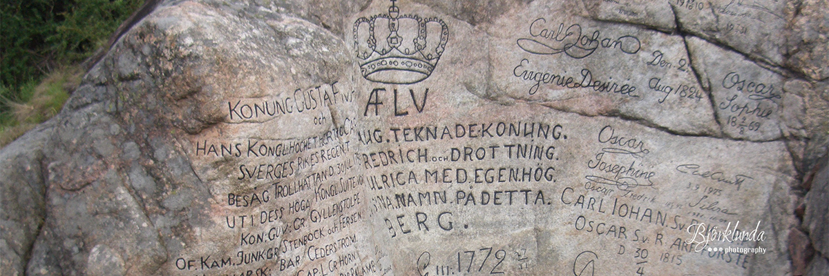 Der Kungsgrotan ist ein Gletschertopf (jättegryta), ein Überbleibsel aus der Eiszeit, der mit der Zähmung des Trollhättaner Wasserfalls zu einer anderen Bedeutung kam.